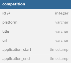 platform, title, url은 CharField로 지정하였고 max_length를 설정해주었다. 또한 접수 시작 날짜와 마감 날짜를 DateTimeField로 지정하였다.
